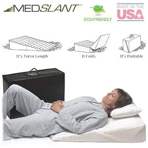 Wedge pillows are typically made of polyfoam or memory foam, with a triangular shape that stays in place better than standard pillows. See our best acid reflux pillows here! Choose the best wedge pillow for acid reflux & start relieving gerd symptoms. Medslant acid reflux wedge pillow will have your head elevated 6 to 8 inches off the bed while supporting your torso. Wedge pillows may help alleviate symptoms of sleep apnea, acid reflux, and poor circulation.
